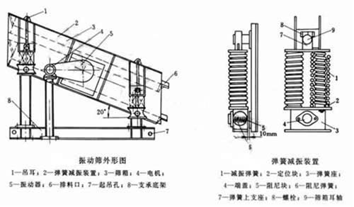 圓振動篩由偏心式激振器、篩箱、電動機、底座及支承裝置組成。
