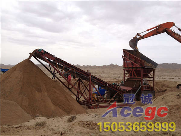 特種干選機(jī)采用挖掘機(jī)上料,廢料用輸送桿輸送走,使用于3米左右沙層,上料高度為4.5米,裝載機(jī)可以直接上料不用助坡。整機(jī)用電量為45kw左右。小時(shí)免費(fèi)咨詢電話:400 9949 111 手機(jī):15053659999 15653473333